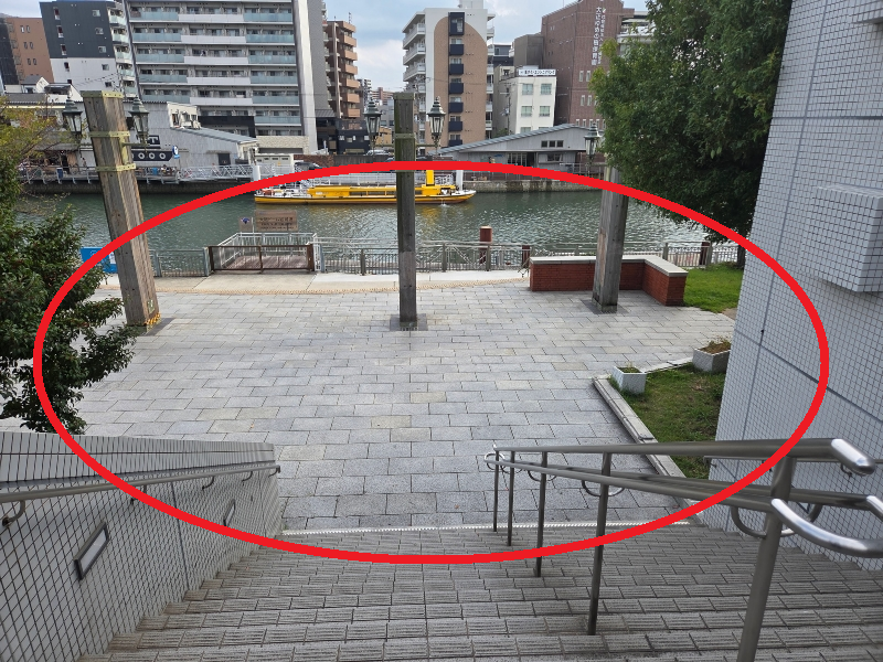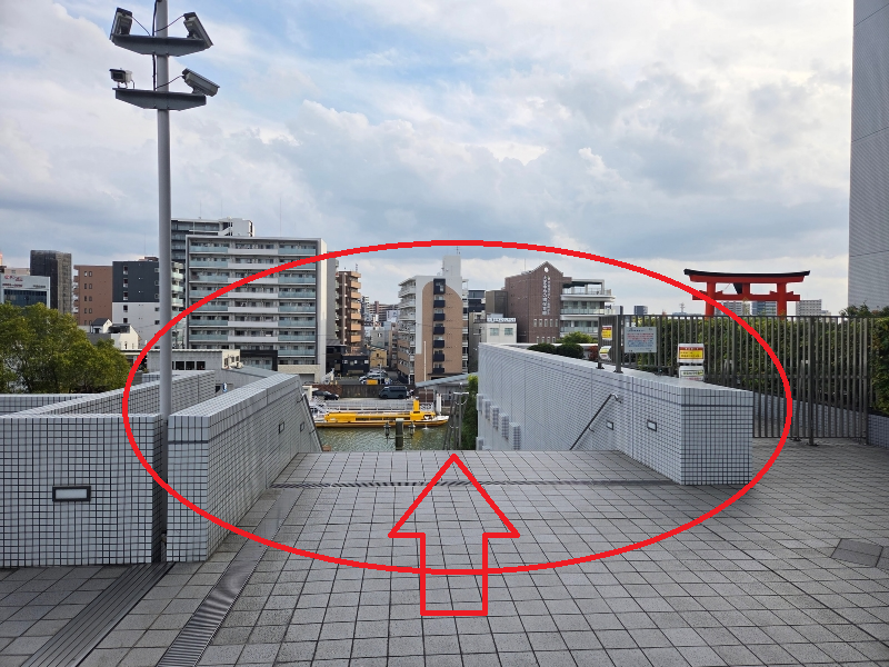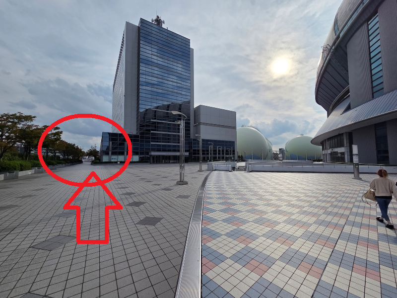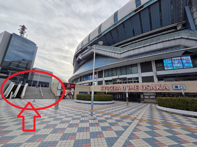 ①쿄세라돔 오사카 동문입니다. 여기서 왼쪽에 보이는 계단으로 올라와주세요.