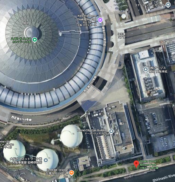 ※(구글맵 등의 지도 어플에서 大阪ドーム南公園으로 검색하시면 찾아오실 수 있습니다)