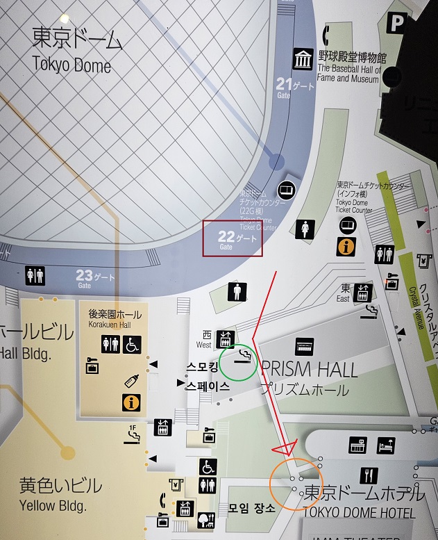 장소는 동경돔 22번 게이트 근처에 있는 스모킹스페이스 옆 길(동경돔호텔 가는 길)에 이어져있는 공터입니다.